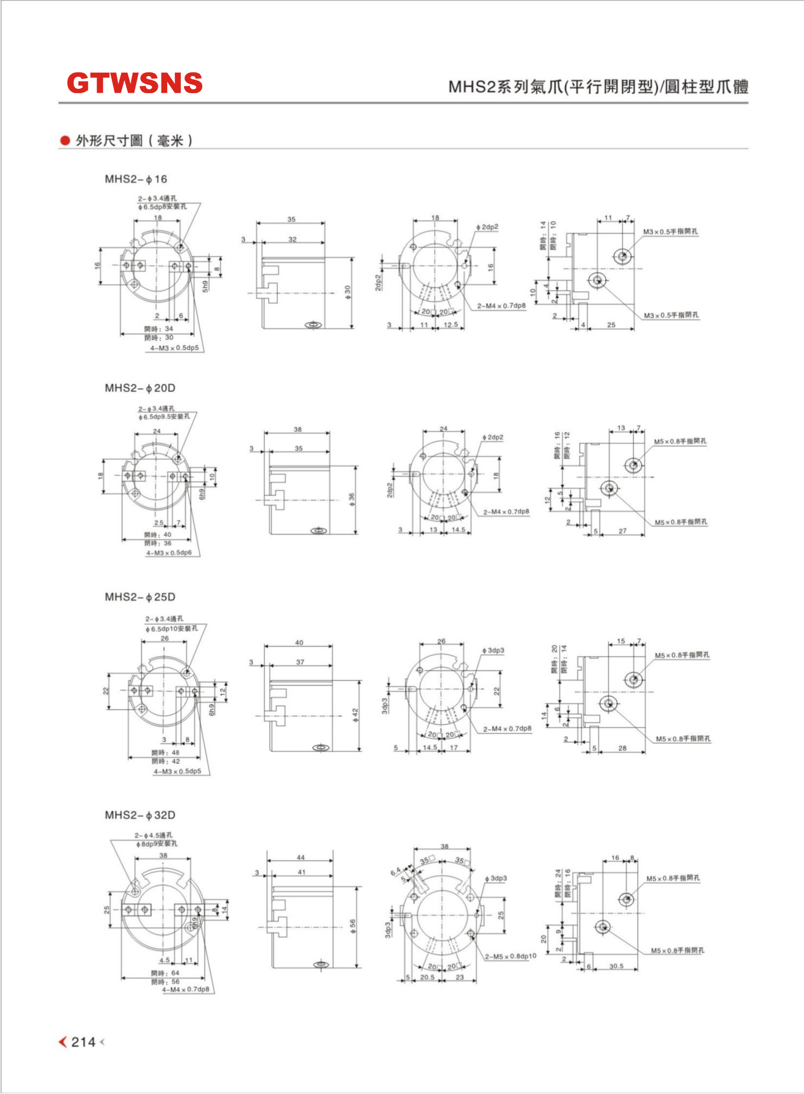 MHS2系列 平行开闭型/圆柱形 φ16~φ63