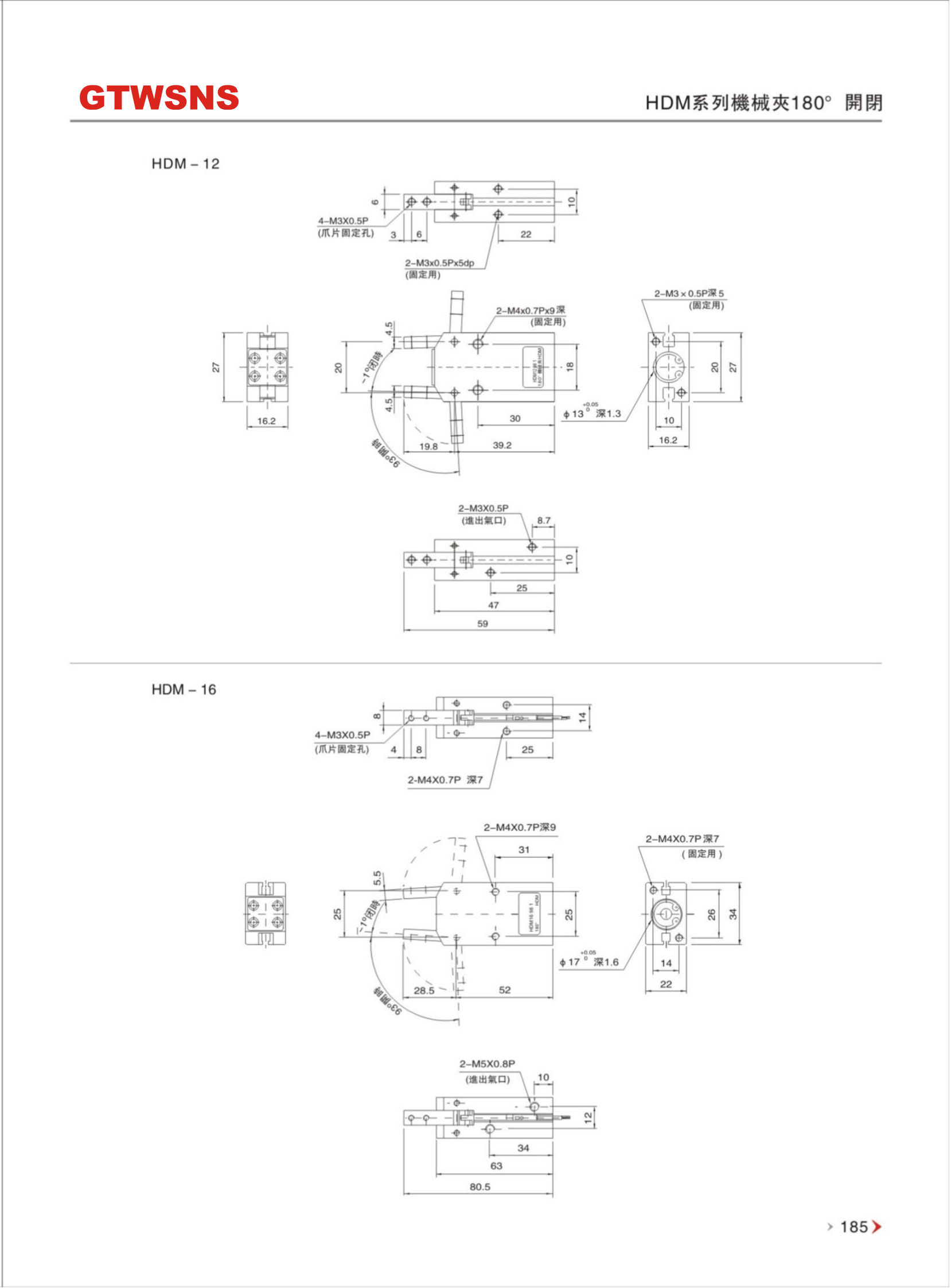 HDM系列 机械夹180°开闭 φ10~φ32