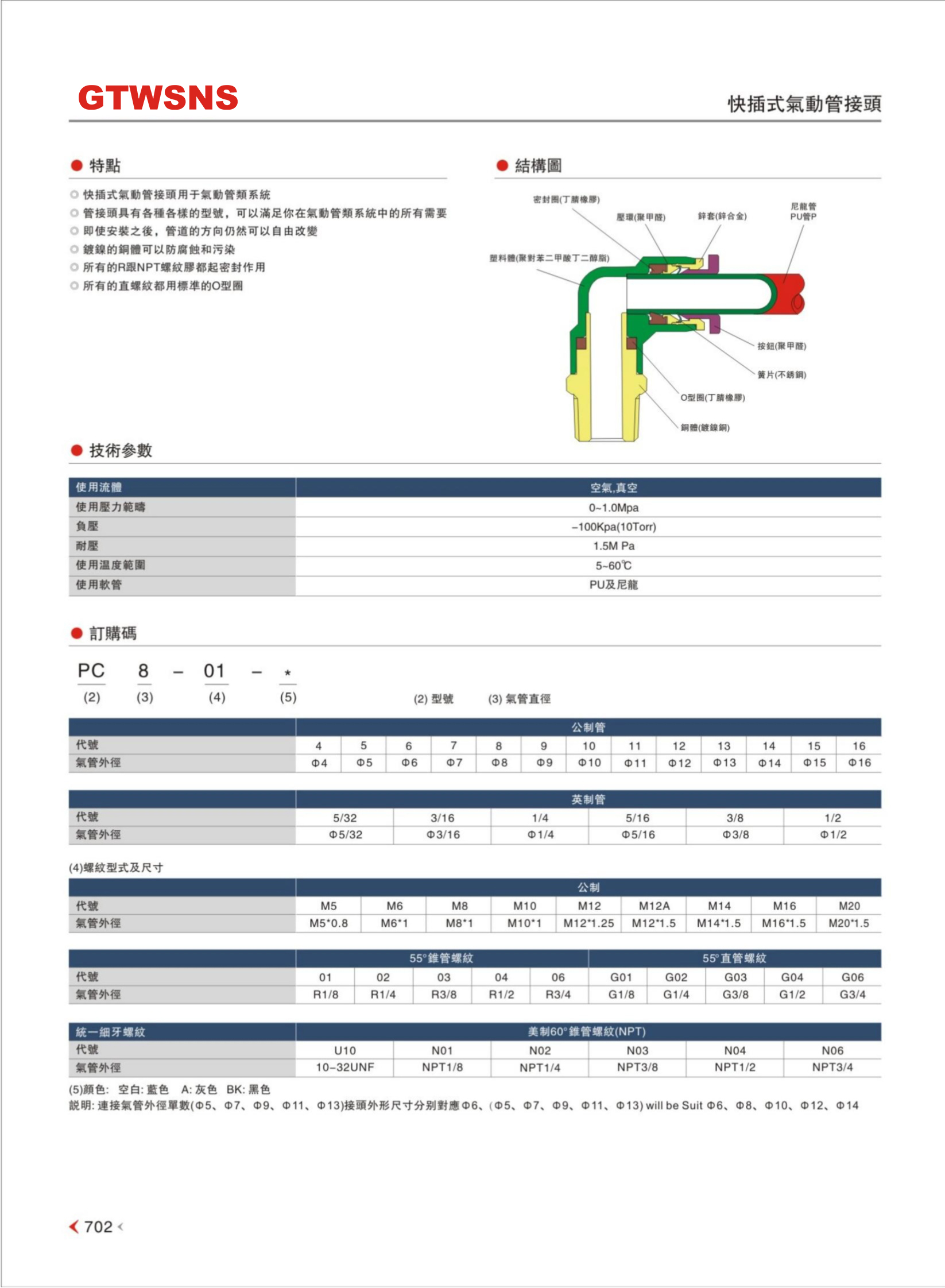PC-G系列螺纹直通